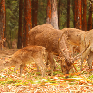 Après la visite de l'usine, direction le Domaine Bois Cheri à proprement parlé. Nous empruntons une petite route de terre. Tout au bord de la route nous rencontrons un troupeau de cerfs de Java. Ils sont en liberté sur le Domaine, attention à ne pas dépasser la limitation de vitesse ! 🦌