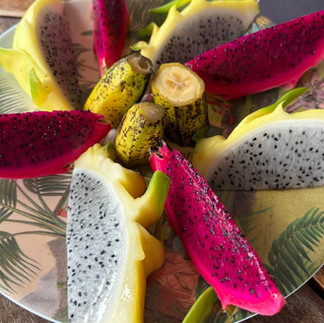 Chaque matin, à vos petits déjeuners vous pourrez découvrir un fruit de saison et surtout péï 🥭🍉🍌
